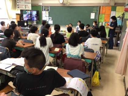朝からほっこりする風景です。1年生がいつもやさしい6年生にお礼のメッセージを渡していました。ひらがなをまだ全部書けない1年生が一生懸命書きました。6年生もとてもうれしそうです。やさしくしてもらった経験と安心感が自分たちが上学年に進級した時、下学年にやさしくできる子どもたちへと成長させます。