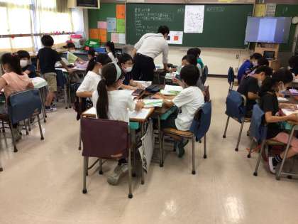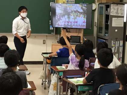 世田谷区には、学区域に畑がある学校もあり、3年の社会科「農家の仕事」の学習では実際に農家の方と連携して授業を行っています。中丸小学校の学区域には畑はなく、子どもたちも農家の方との接点もあまりありません。これからの学習をきっかけに農家の方の仕事に興味を持てるといいです。世田谷区の西側、南側には、小さい畑があり、30種類以上の農作物を育てていることを資料から読み取っていました。