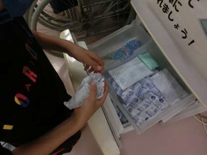 怪我をした時に使う絆創膏の補充、冷却する時に使う保冷剤の準備、各手洗い場の石けん補充など、それ以外でもさまざまな活動をしています。