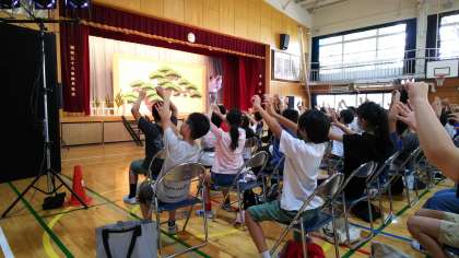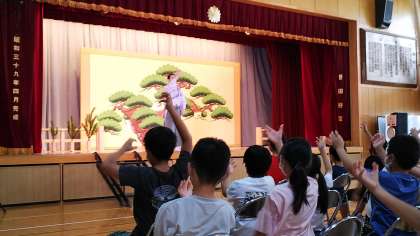 世田谷区立小学校の6年生は狂言の鑑賞を行います。今日は旭小学校の体育館で旭の6年生と鑑賞しました。万作の会の方と世田谷パブリックシアターさんのお力で貴重で何よりも楽しい体験ができました。
