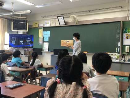 7月11日(月)におはなし広場の方が来校して、たくさんのお話を読み聞かせしてくださいました。絵本「ツバメのたび」、「腰折れすずめ」、「アリョーヌシカとイワーヌシカ」、紙芝居「1つぶのおこめ」、そして、詩「え それほんとう?」を紹介してくださいました。なかでも、「1つぶのおこめ」のお話で、最初は1つぶでも、一日一日倍の数をもらっていくと30日間で5億を超えることに子どもたちは驚いていました。素敵なお話の世界に浸った1時間でした。