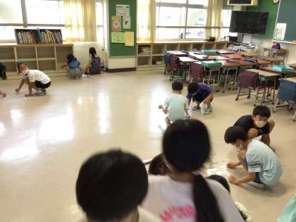 今日の4校時は大掃除です。1学期、お世話になった教室や廊下をすみずみまできれいにしていました。メラミンスポンジを使って汚れを落としているクラスもあり、本当にピカピカになりました。