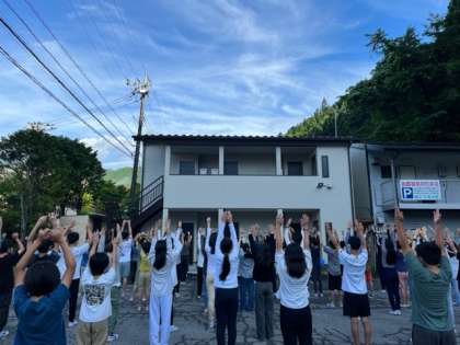 2日目が始まりました。5分前行動を意識して、朝会に参加することができました。日光の豊かな自然の中で、みんなでラジオ体操をしました。体も心もすっきりさせて、1日をスタートさせました。