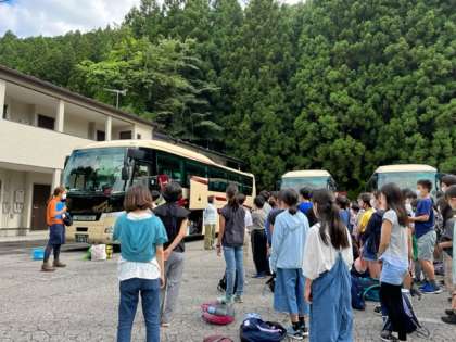 部屋の清掃を済ませ、閉園式を行いました。3日間を通して自分の成長や思い出を振り返りました。また、宿の方への感謝の気持ちを伝え、お別れの挨拶をしました。次は、日光江戸村へ向かいます。