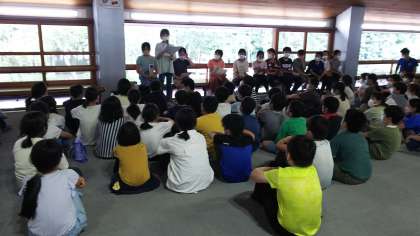 有志の子どもたちによる学年レクです。みんなを楽しませようと企画運営してくれました。全身あっち向いてほい、先生まるバツクイズ、学年が一つになったじゃんけん列車、そして最後はソーランで締め大成功でした。密や接触に気を付けてよく運営してくれました。これから入浴タイムです。