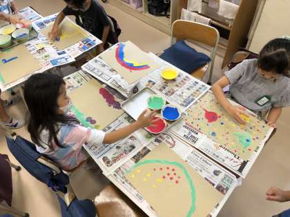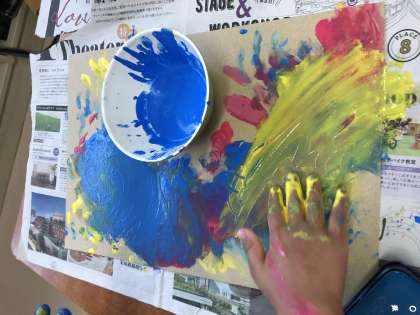 指や手を使って、絵の具の感触を楽しみながら制作活動に取り組みました。
