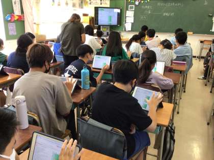 6年生は総合的な学習の時間にキャリア教育を行っています。4時間目に自分の長所を見つめ、適職診断を行いました。たくさんの質問に答えると自分に合った職業を9種類提示してくれるアプリを使います。小さいころからのあこがれの職業を提示された子もいましたが、多くの子どもたちは予想外の職業を提示されていました。「提示された職業は自分に合っている職業かもしれないけど、それにやりがいをもてるかは分からない。」と冷静に判断している児童もいました。5時間目は本校教員の同級生の方でスパゲッティ屋を営む方がゲストティチャーでお話をしてくださいました。将来へ漠然とした不安を抱くのは当然です。中丸小で学んだこと、出会った人を糧にして、大切な自分の人生を作り上げていってほしいです。