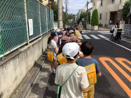 生活科の学習で町たんけんに行きました。学校の周りにある施設やお店を見て回りました。世田谷観音や野沢龍雲寺では、中に入って見学したり、質問に答えていただいたりしました。実際に見たり聞いたりしたことで、町の様子を詳しく知ることができました。