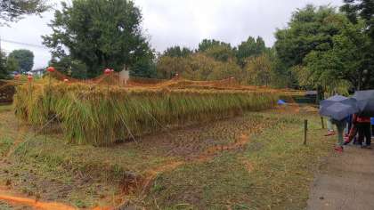 小雨の中、次太夫堀公園を見学しました。50年ほど前には世田谷区にも茅葺きの民家が200件ほど残っていましたが、今ではここに残っているだけです。今の家と全然違う造り、匂いなど、子どもたちは気が付いたことをたくさんメモしていました。