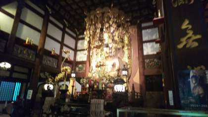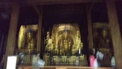 九品仏を見学させていただきました。目の前の大きな阿弥陀様とお釈迦様、閻魔様に子どもたちも感激していました。