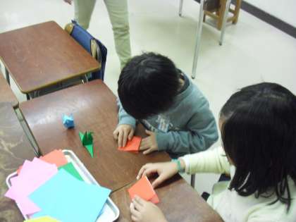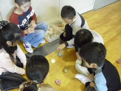 地域の方に教えていただいた、はねつきや折り紙などの昔遊びをしました。