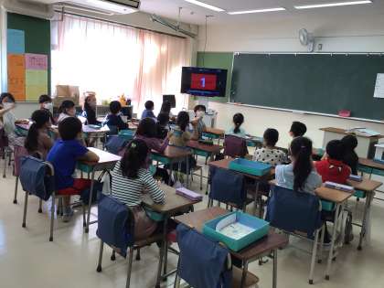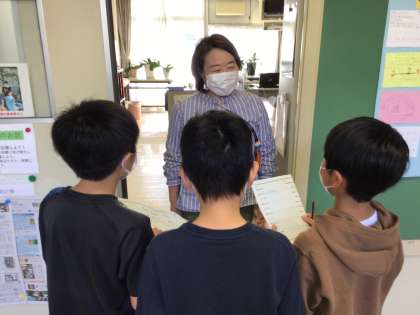 中休みに5年生が校長室に英語で質問しにきました。授業で習った内容(「Can you〜?」)を実際に教室外で使ってみようとする姿勢がいいです。これからも臆することなくコミュニケーションツールである英語を使っていきます。