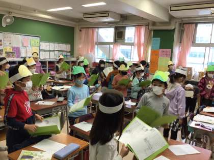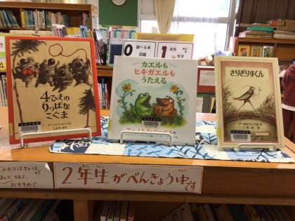 2年生が「おてがみ」の授業で、かえるくんとがまくんのお面をつけて音読発表をしていました。手紙が来るのをあきらめているがまくんの気持ち、がまくんにお手紙を出し、到着を待つかえるくんの気持ちを子どもたちは想像して音読していました。図書室でも「ふたりはともだち」の作者であるアーノルド・ローベルさんの本を紹介していました。アーノルドさんの世界を広げてくれた司書さんに感謝です。