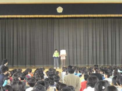 ☆学校長の話の後は、1年生のお友達が児童代表として2学期を振り返り、