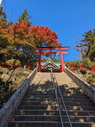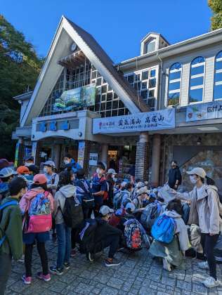 すばらしい快晴です。子どもたちはグループで高尾山に登ります。