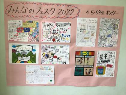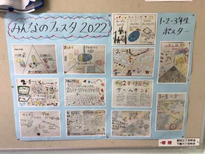 11月11日・12日(保護者公開日は12日)に行われるみんなのフェスタ2022に向け、子どもたちの気持ちが盛り上がっています。クラスの出し物のポスターも校内掲示されました。