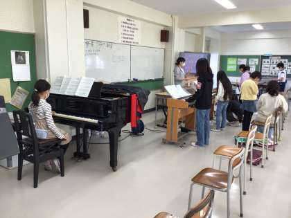 高学年の子どもたちが委員会活動の取組でがんばっている姿を先日お伝えしましたが、今日は音楽クラブの子どもたちが分刻みのスケジュールで活動に取り組んでいる姿をお伝えします。明日からのみんなのフェスタや委員会の常時活動で休み時間の練習に参加できない子どももいましたが、クラブ長さんがてきぱきと進行管理をし音楽朝会での発表に向け練習していました。