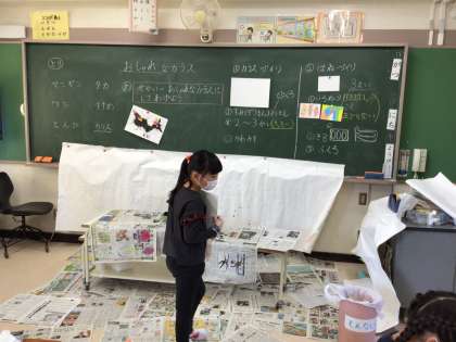 みんなのフェスタ当日の教室掲示には間に合いませんが、1年生の「おしゃれなカラス」の披露を楽しみにしていてください。