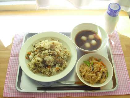 給食では白玉しるこをだしました。皆さんが今年1年を元気に