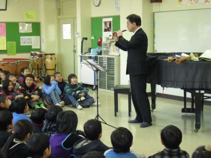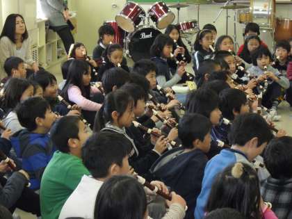 東京リコーダー協会から笠松徳次先生を招いて、特別授業を行いました。