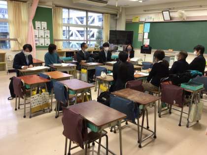 響きの学び舎である駒留中学校・駒繋小学校・旭小学校の先生方に中丸小学校の授業を見ていただきました。今年度の学び舎の重点目標である「読み解く力の向上」「活用する力の向上」が授業観察のポイントです。授業の後、先生方は教科別に分かれ授業改善に向け協議しました。すべての教科の学習だけでなく、生涯にわたって必要となるのが「読み解く力」であり「活用する力」です。意図を正確に読み取る、要約する、地図、グラフ、データを読み取る。毎日の授業の中で引き続き定着させていきます。