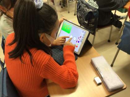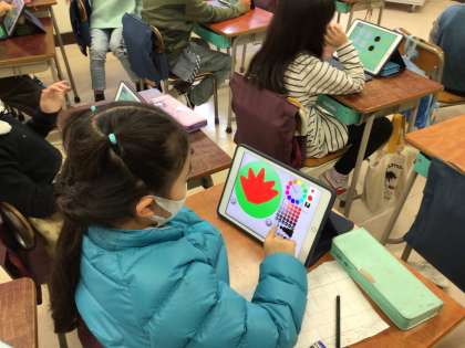 中丸小では、低学年でビスケット、中学年以降でスクラッチを使ってプログラミングの活動を行っています。2年生はすっかりビスケットの使い方にもなれて自分でゲームを作れるようになりました。