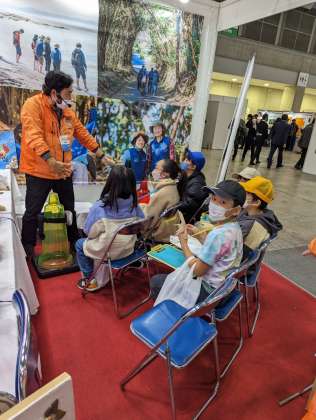 そしてもっと興奮することが。東京ビッグサイトで行われているエコプロ2022の見学です。最先端の企業さんや大学で取り組まれている成果の展示とおみやげに子どもたちは大興奮しています。いつまでも生き続けられる地球環境をこれからも考え行動につなげていくきっかけになりました。朝早くからのお弁当の用意ありがとうございました。