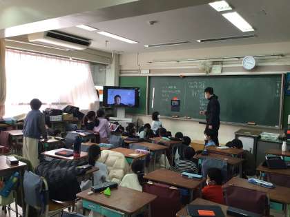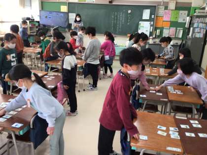 今日は5・6年生が中丸ホールで書初めを行います。新しい年に気持ちを込めて書くという日本の伝統文化をこれからも大切にしたいです。1年生も新年にふさわしく、カルタ取りを行っていました。4年生の教室では、総合的な学習でお世話になっているゲストティーチャーの方によるzoomでのオンライン出前授業を行っていました。自分たちが考えた身近な人を元気にするメニューについてアドバイスをいただきました。