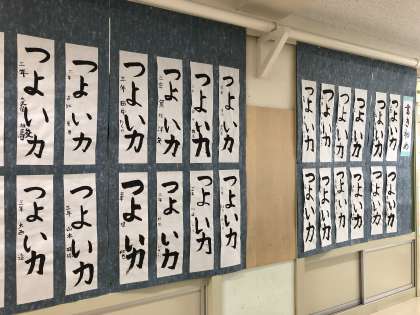 冬休み、書き初めの課題にご協力いただきありがとうございました。13日に中丸ホールで、毛筆で初めての書き初め会が行われました。子どもたちは、練習の成果を十分に発揮し、力強い「つよい力」を書き上げました。一文字一文字を丁寧に書き上げる集中力に、成長を感じました。4年生に向けて、子どもたちが自分の成長を実感できる3学期になるよう、支援して参ります。今年もよろしくお願いいたします。