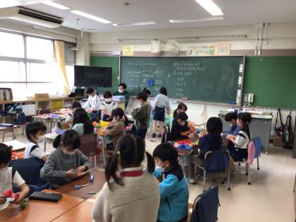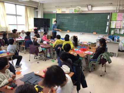 来週の月曜日は東京も雪が降る予想がでています。寒さがますます厳しくなりますが、校長室前はお雛様が飾られ、春の空気が感じられます。1年生の教室では、カラフルな紙を使って表現活動を楽しんでいました。