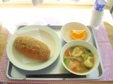 今日の献立は、あげパン、すいとん、ポンカン、牛乳です。