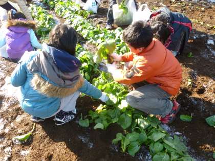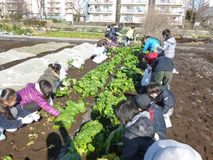 3年生は世田谷区内の秋山農園へ小松菜を採りに行きました。