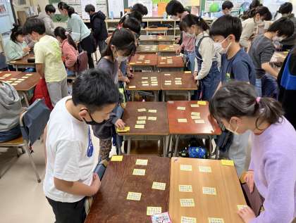 百人一首は五色に分かれており、今年の5年生は黄札(20枚)でした。