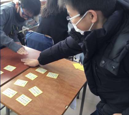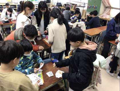 なぜ百人一首をやる人が増えたかというと、日本語の授業で練習を続け、百人一首交流会が行われたからです。