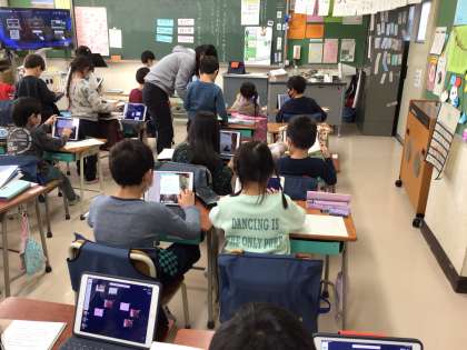 1年生は教科書の学習の発展で、いろいろな動物の赤ちゃんの様子を本から調べ、ロイロで提出していました。