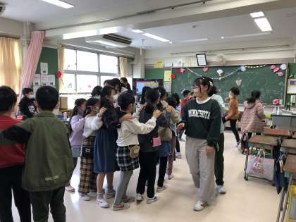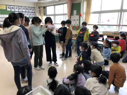 今日の1時間目に6年生を送る会がありました。今年は、各クラスで内容を考えて6年生をお迎えしました。1組は、歌のプレゼントとじゃんけん列車。2組は、伝言ゲームとお笑い。3組は、歌のプレゼントといす取りゲーム。4組は、なんでもバスケット。クラスそれぞれの企画で、6年生と楽しい時間を過ごすことができました。そして、6年生からは、刺繍の入った雑巾のプレゼントをもらいました。