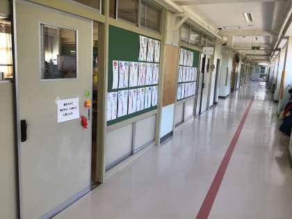 1年生の廊下には子どもたちの自分の名前が掲示されています。4月に書いた時よりもどの字も字画が整い、ていねいに書かれています。また、習った漢字も使われていて、この一年の学習の積み重ねが表れています。