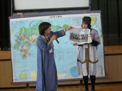 今日は、総合の学習の時間として、国際理解をテーマに「ヒッポファミリークラブ」の