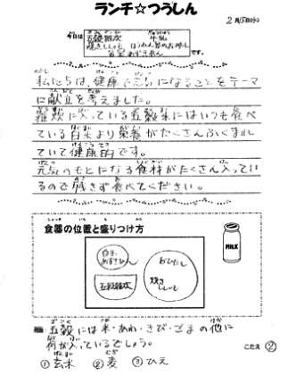 右上にある画像の「ランチ☆つうしん」も子供たちが作成しました。