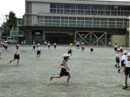 1年生も今日から校庭で遊んでいます。