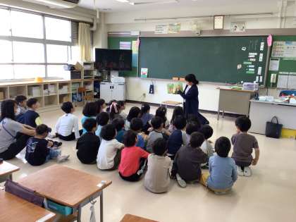 中丸小学校では、月に1回、火曜日の朝学習の時間に、保護者の図書ボランティアの方が読み聞かせをしてくださいます。ボランティアさんが紹介してくださる本にくぎ付けの子どもたちです。自分がいつも選ぶ本とは違う本に触れる、自分の世界が広がる、とてもよい機会でありがたいです。