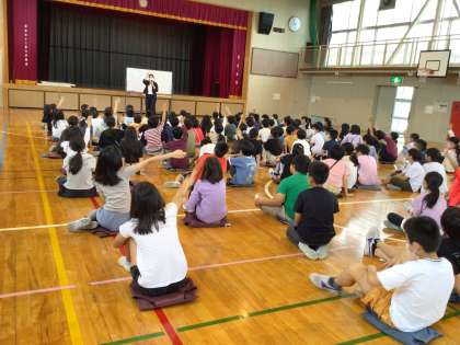 1時間目は、5年全児童が中丸ホールでオリエンテーションを受けました。保護者の方もご参観いただきありがとうございました。