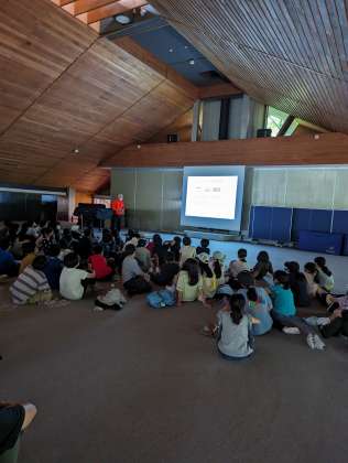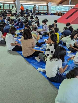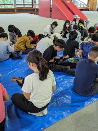 森林保全のために間伐をすることをスライドで学びました。川場村の森林組合の方が箸になりやすいように加工してくださっています。