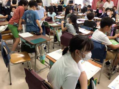 今日は4年生の子どもたちが、「約束や社会の決まりの意義を理解し、それらを守ること」という学習内容を話し合う中から学び取りました。グループやクラス全体で話し合い、自分事として考えを捉え、学び取ったことをワークシートに書いていました。とても白熱した時間で、あっという間の45分間でした。「話し合えるから道徳の授業が好き。」と、安心して自信をもって自分の考えを伝え合える4年生です。