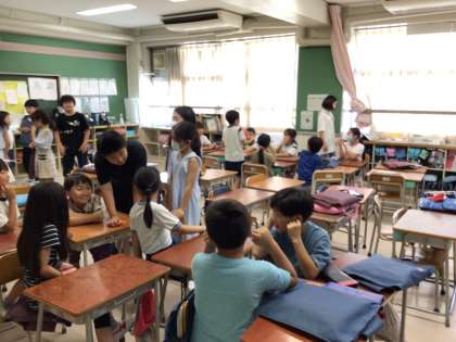 今日は暑さが厳しいので、2・3・5年生の縦割り遊びは、校庭・屋上では行わず、屋内で行いました。それぞれの班の5年生が考えた遊びを2・3年生は協力して遊んでいました。1・4・6年生は掃除をがんばっていました。