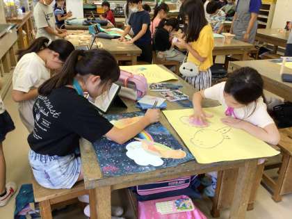 4年生は涼しい図工室で、「カラフルバード」の制作に取り組んでいました。思う存分、自己表現を楽しんでいる姿は真剣でかっこいいいです。