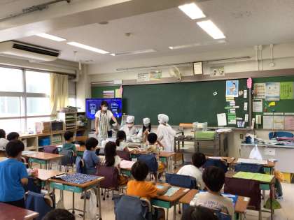 1学期の給食最後の日です。1年生は給食当番さんが手際よく配膳しています。4月のころとは見違えるようです。1年生の給食を見守ってくださった、小1サポーターの方には大変感謝しています。ありがとうございました。1学期で小1サポーターさんの給食の見守りは終了します。2学期以降も、子どもたちの学習面や生活面でお手伝いをお願いすることがあるかと思いますので、今後もご協力をよろしくお願いします。