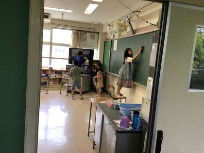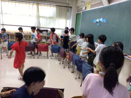 大掃除をクラスで行い、1学期、お世話になった教室、靴箱、廊下をきれいにしました。すみずみまできれいになった教室でクラスのお楽しみ会を楽しみました。