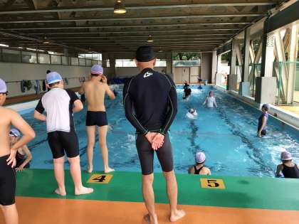 学年の先生以外の先生からも指導を受けます。高学年が気持ちよさげに泳いでいました。いつも以上に安全に留意し行います。