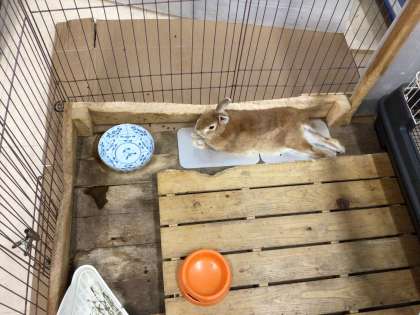 当番の飼育委員児童がムギのお世話をしています。ケージの隅々まで掃除をしてくれました。